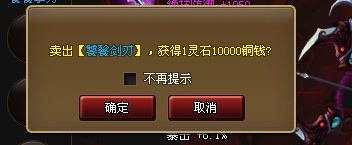蓝色灵件售出获得1万铜钱,同时获得1颗灵石。