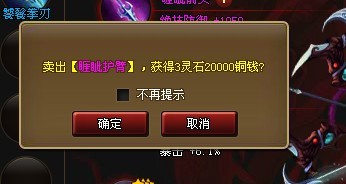 紫色灵件售出获得2万铜钱,获得3颗灵石。