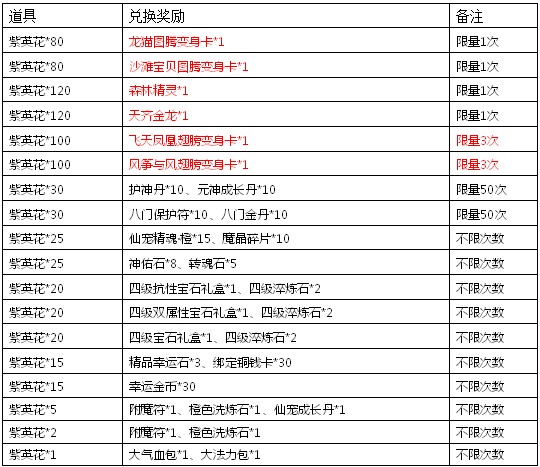 活动规则:活动期间,每消费400元宝即可获得紫英花*5,集齐一定数量的【紫英花】可在活动相应面板兑换超值奖励哦!