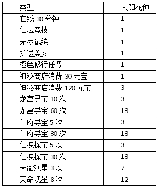 1.活动期间,玩家完成以下指定游戏内容可获得太阳花种,不同数量太阳花种可兑换不同级别的太阳花;