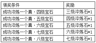 活动期间,玩家每淬炼成功一个指定级别的真·宝石,即可获得系统赠送的好礼一份。