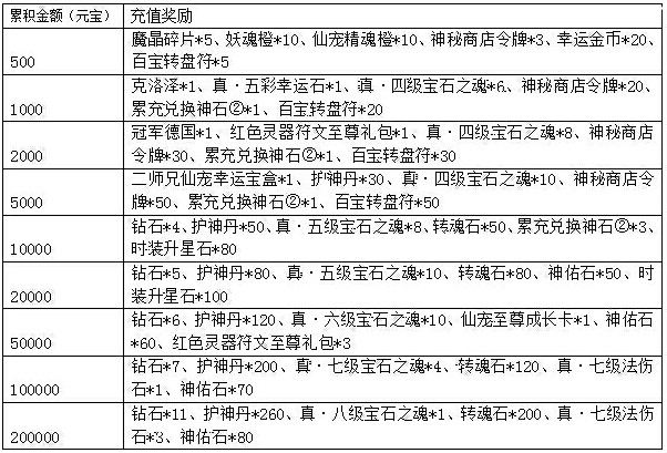 活动规则:活动期间,单笔充值达到指定额度,还可以获得以下超值丰厚的奖励哦!