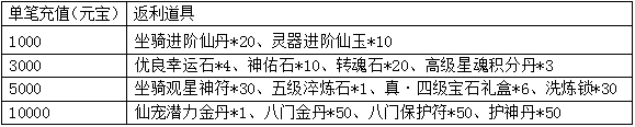 温馨提示:单笔充值奖励可重复领取,不设上限,奖励物品均为绑定,以信函方式发放。