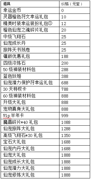 活动期间,所有玩家首次充值任意金额,即可获得价值1088元宝的首充奖励:中级星魂积分丹*2、灵幻石*2、鉴宝符*2、精品幸运石*1、灵器进阶仙玉*3、时装升星石*3、香水百合*1(奖励每人只能领取一次,未进行过首充的玩家还可额外获得【首充礼盒】哦)。