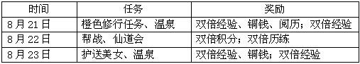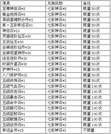活动期间,40级以上玩家每天登陆游戏可获得额外奖励:玉魂*2、妖魂紫*5、仙宠口粮*5、绑定铜钱卡*8、飞仙令牌.绿*5、神秘商店令牌*1。