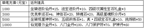温馨提示:单笔充值奖励可重复领取,不设上限,奖励物品均为绑定,以信函方式发放。