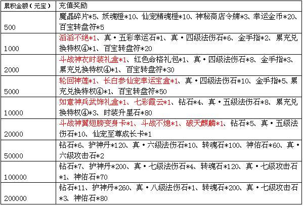 活动规则:活动期间,单笔充值达到指定额度,还可以获得以下超值丰厚的奖励哦!