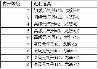 活动规则:活动期间,将橙色品质内丹升级到指定级别,可获得额外系统赠礼。
