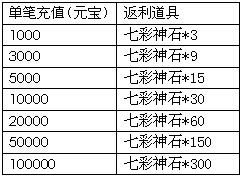 温馨提示:单笔充值奖励可重复领取,不设上限,奖励物品以信函方式发放。