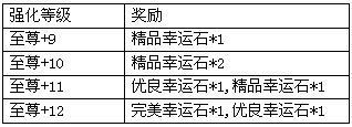 活动规则:活动期间,任意装备至尊强化成功至指定级别,都可获得额外奖励。