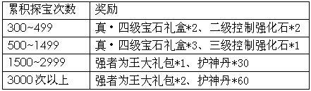活动规则:活动期间,每天累计寻宝次数达到150次且在寻宝达人榜排行前3名玩家可获得额外系统奖励。