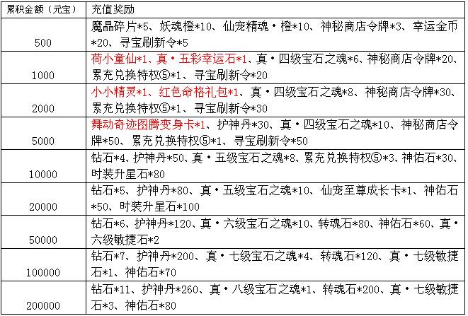 6、累积充值大礼:活动期间,累积充值达到指定额度,还可以获得以下超值丰厚的奖励哦!
