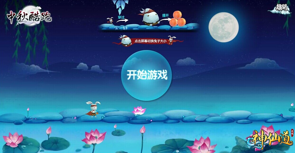 2、在奔跑的过程中玉兔会遇到月饼堆、假山等障碍物,玩家可通过鼠标操控调整玉兔大小来通过障碍。遇到月饼堆需把玉兔变大,才可撞开月饼堆继续向前,遇到倒立的假山时则需把玉兔变小才可安全通过。点击屏幕可使玉兔变大,再次点击则变小。
