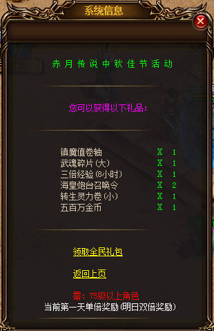 《赤月传说》 中秋节活动