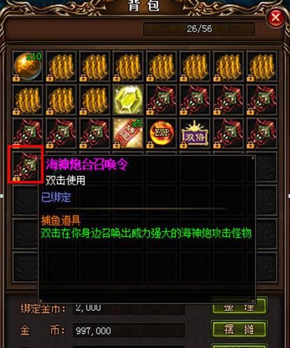 进入地图后,系统将自动赠送给玩家海神炮台召唤令。通过双击召唤令玩家便可以召唤出强大的海神炮台攻击入侵的怪物。