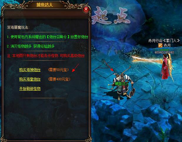 玩家还可以在【捕鱼达人】NPC购买炮台召唤令。
