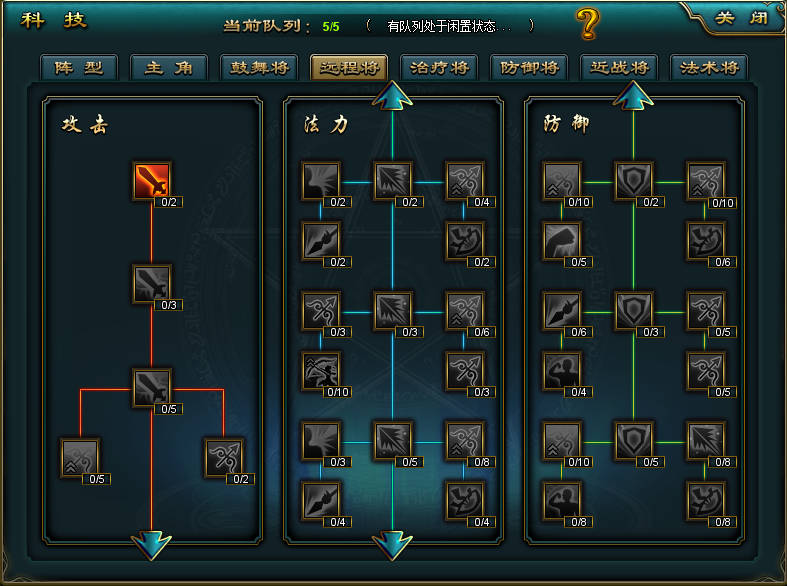 4)玩家还可通过金币购买科技队列,更有效率的升级将神科技树的各个科技点,一个玩家最多可拥有5个科技队列。