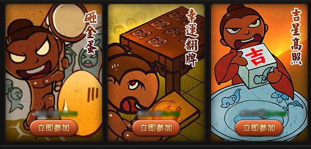 活动规则:活动期间,玩三款积分小游戏:砸金蛋、幸运翻牌、吉星高照,可获得大量游戏积分,消耗积分可兑换各类奖励。小提示:奖励兑换会有不同的积分要求和兑换次数限制