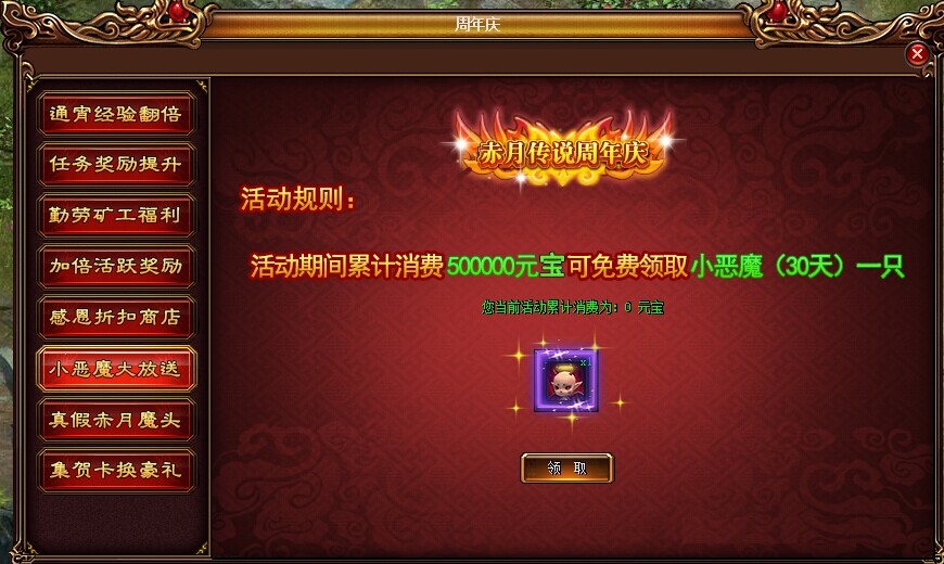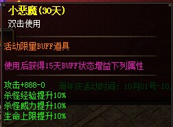 28888元宝 6、小恶魔大放送、活动期间,累计消费50万元宝,可获得小恶魔(30天)BUFF道具一只