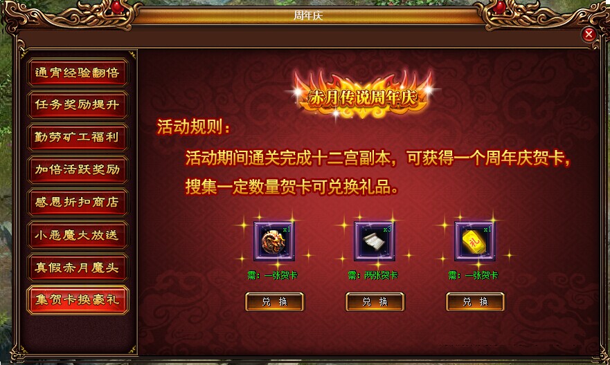 8、集贺卡换豪礼,活动期间通关完成12宫副本,可获得一个周年庆贺卡。