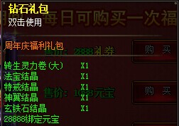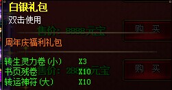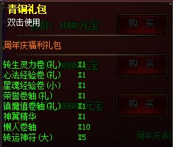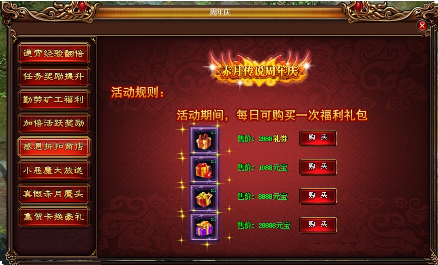 5、感恩折扣商店,活动期间每日可使用礼券或者元宝购买一次福利礼包(可多个购买)