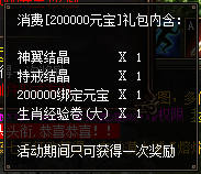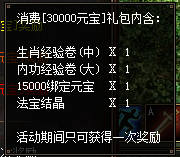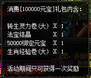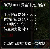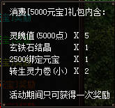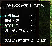 活动规则:活动期间,累计消费元宝达到1000元宝以上可获得相应的消费豪礼。