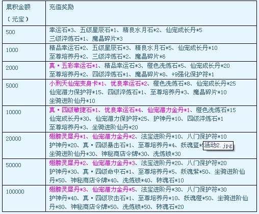 温馨提示:不同充值额度奖励可累积获得,奖励以信函方式发放,均为绑定。