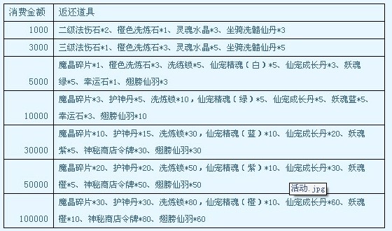 玩家若在指定系统消费满100000元宝,即可获得以上消费额度的所有奖励。