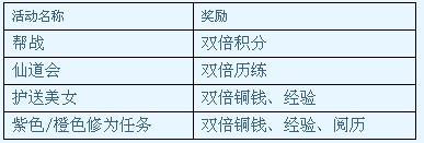 活动规则:活动期间,参加相应的活动可获得相应的双倍奖励。