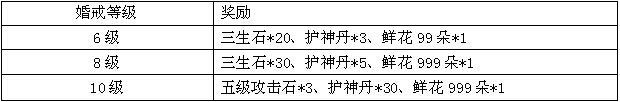 活动规则:在活动期间,将婚戒等级提升至指定级别,夫妻双方可获得以下额外的奖励哦。
