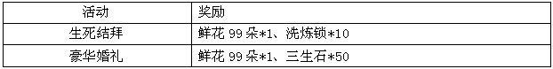 活动规则:活动期间,进行生死结拜和豪华婚礼,将获得超值奖励。