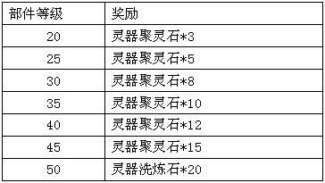 活动规则:活动期间将灵器进阶至指定阶数,将获得额外系统奖励。