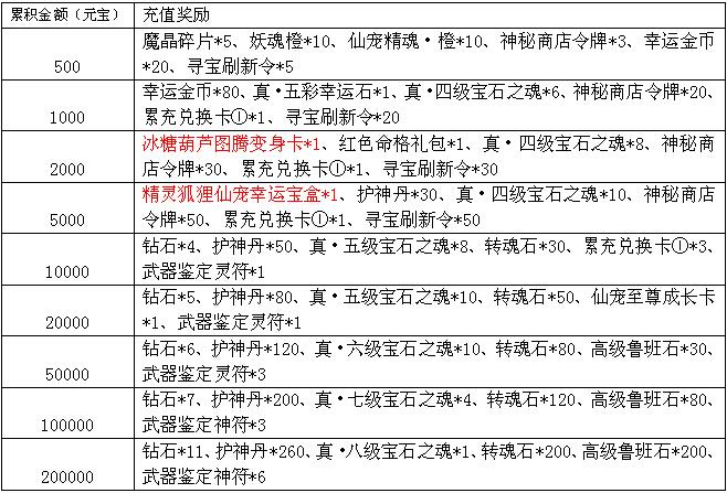 6、累积充值大礼:活动期间,累积充值达到指定额度,还可以获得以下超值丰厚的奖励哦!
