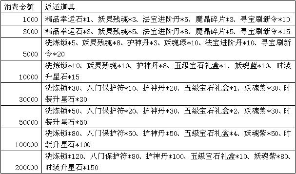 活动规则:活动期间,玩家在除市场外其他全部系统累积消费至指定额度,可获得额外的奖励。