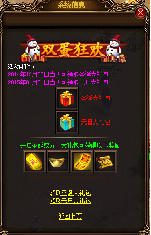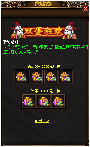 【活动内容】在12月25日-27日消费到指定金额即可获得相应的礼包