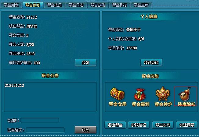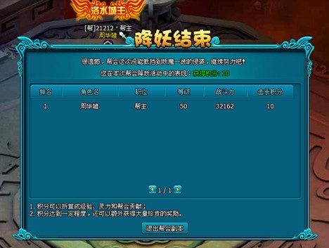 参加帮会降妖所获得的积分会以一定比例转换为帮会贡献与帮会资金。