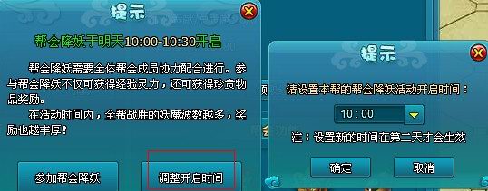 帮主还可以调整下一场的帮会降妖活动的时间哦。