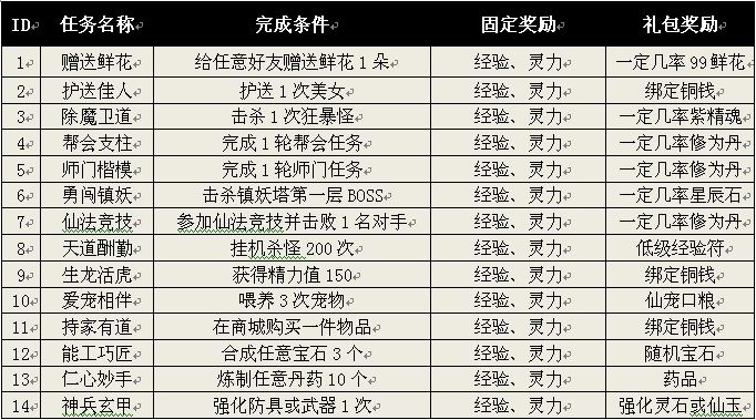 三、任务类别及奖励
