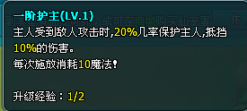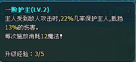 ③出战仙宠拥有一个一阶护主(lv1)技能。技能升级经验为1/2.