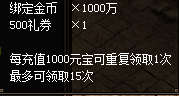 累计充值1000元宝:
