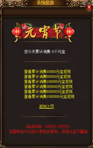累计消费 返现元宝
