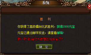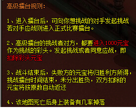 对方同意后进入擂台 双方都扣1000元宝 一共5分钟
