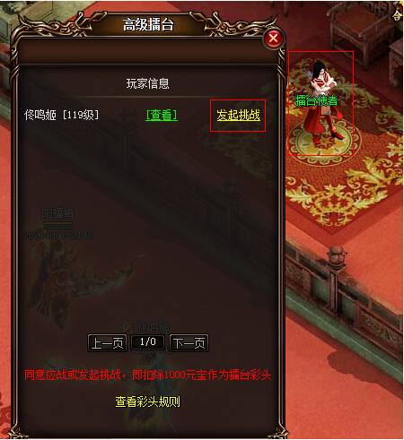点击擂台使者 可以看到里面的人 然后选择发起挑战