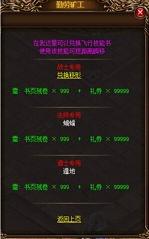 同级别龙王装备可以免费兑换成道士的神兽装备