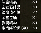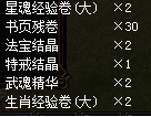 书页残卷*10,懒人卷轴*20,神翼精华*1,祖玛令牌*1,神石碎片*5,副本boss凭证*3;(所有物品均为绑定)