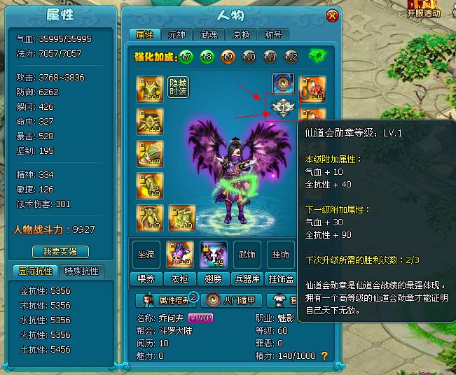 仙道会勋章等级和自身仙道会战绩有关,仙道会胜利场次越高,仙道会勋章的等级会越高!如下图角色面板可