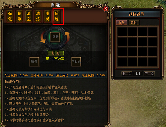 1、盾牌只能打入两个盾魂,第一个盾魂位置免费,第二个盾魂位置需要1000元宝开启