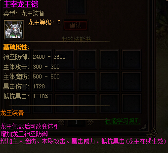 主宰龙王铠属性: