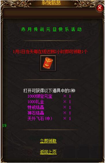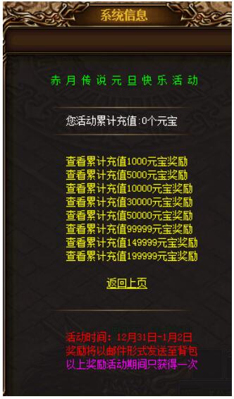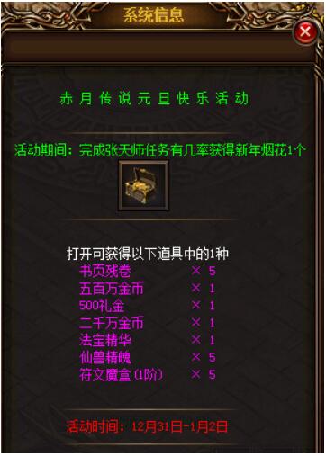 参与方式:玩家可打开右上角【节日活动】图标,或者在赤月皇城148,89【节日使者】处查看活动内容