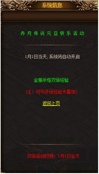 【活动内容】活动期间,活动当天全服杀怪双倍经验
